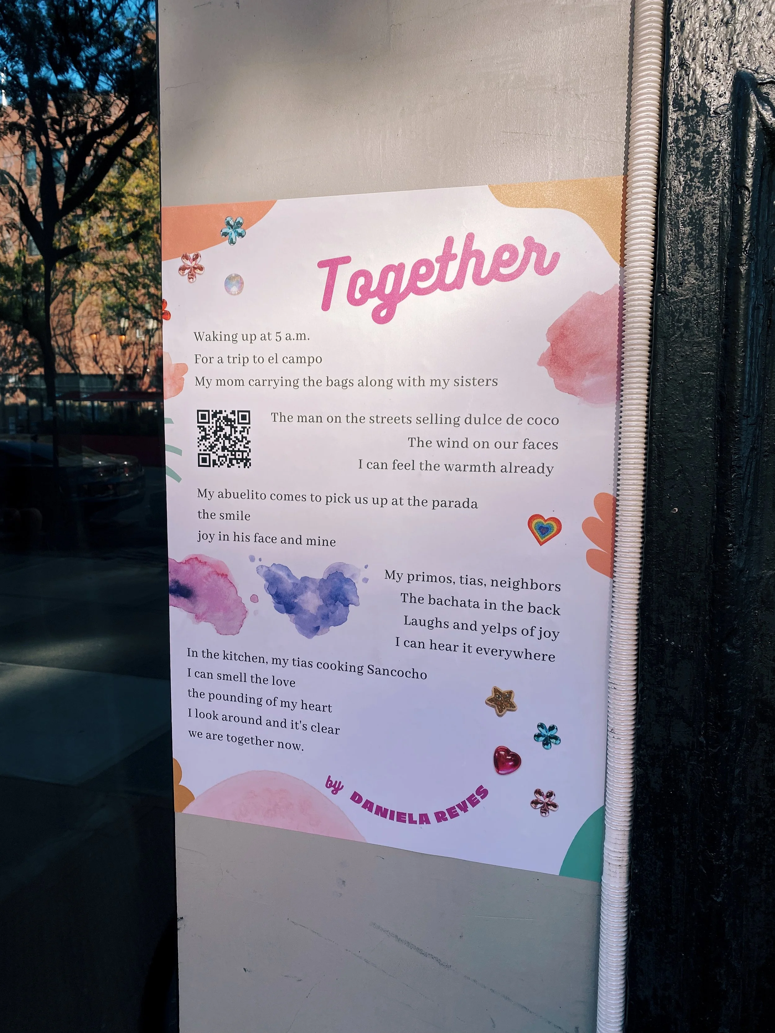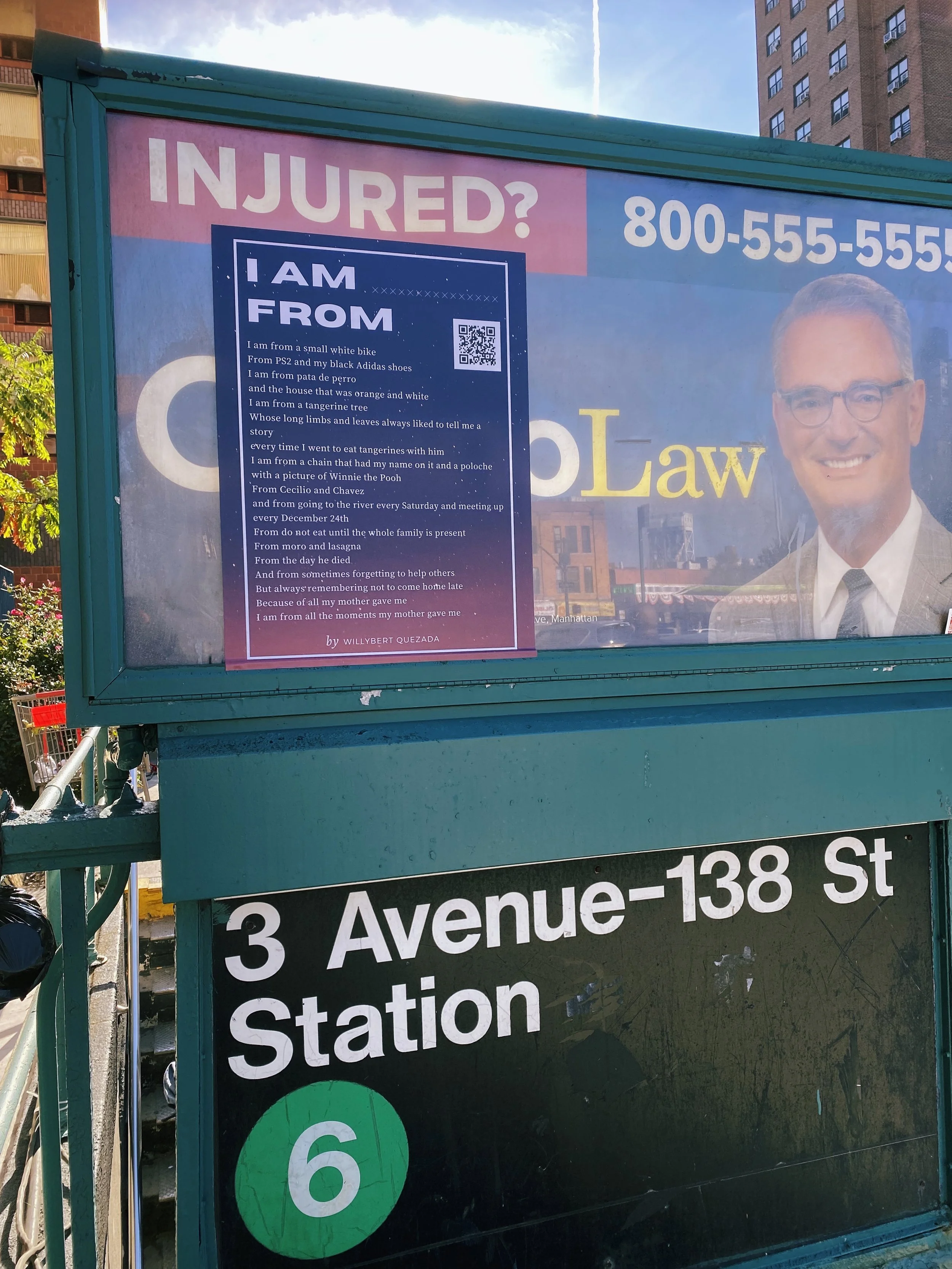 A project born of community asset mapping, storytelling, and youth arts education and engagement, “Believe in the Poetry” aims to get first-generation, English-language-learning, South Bronx students’ words out of the classroom and into community. After working with high schoolers across the Bronx for several months, introducing them to poetry and the value of storytelling, and helping them craft poems under the themes of identity, liberation, and home, I was awarded a NYFA City Artist Corps Grant in order to print the students’ poems and post them up all over the neighborhood they know and love. This was done with the goal of affirming the importance of storytelling for these students, and the power they hold to forge community through art when they use their own voice. By having their poems take up physical space in the streets they walk daily, the project also provides a sense of permanence in a quickly-gentrifying neighborhood, and combats displacement.